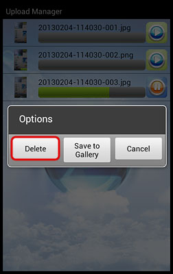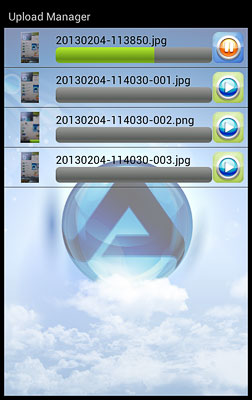 Upload Manager Check the status, pause and cancel file upload(s). Click on Upload Manager and you can view the status of any file uploads that are currently in progress. By default and after the upload is completed, this screen is blank.