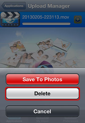 - To delete an upload, tap on the file and click Delete.