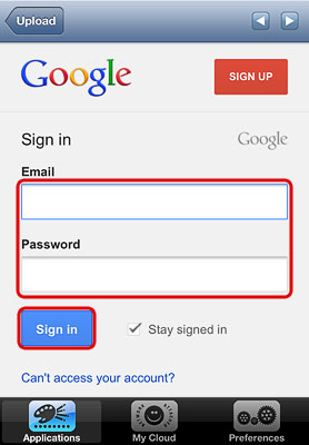 | Video to MyCloud/Youtube | Upload videos from your album on the mobile device to your NAS and simultaneously post them on YouTube. | Click on Video to MyCloud/Youtube, locate the video that you would like to upload, select it and click on Choose to upload the file to your NAS. Follow to upload wizard to sign in to YouTube and post the video clip on your YouTube account at the same time. |