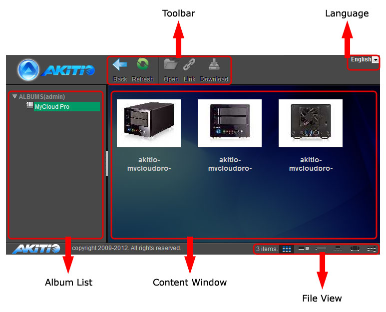 | Link | Display the URL or the HTML code for the selected file. Use this URL or HTML code if you would like to share a single file rather than the whole album. |