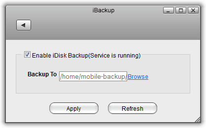 | Enable iDisk Backup | Select the check-box to enable the iBackup service. The current state of the service is displayed as “Service is stopped” or “Service is running”. |