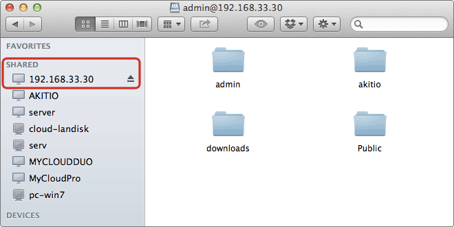 - The network drive is now listed in your finder under Shared devices. When no longer needed, click on the eject button to disconnect the drive.