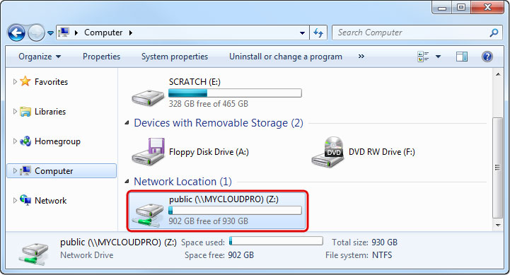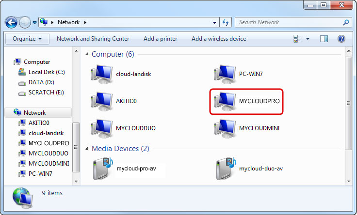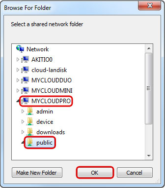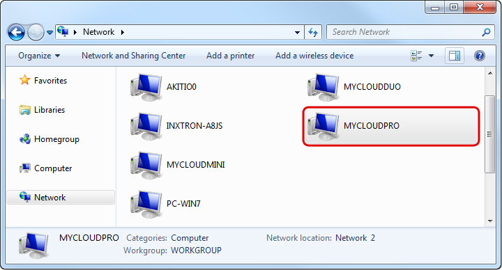 - Enter two backslashes followed by either the host name (e.g. \\MYCLOUDPRO) or the IP address (e.g. \\192.168.1.30) plus a folder (e.g. \\MYCLOUDPRO\public).
