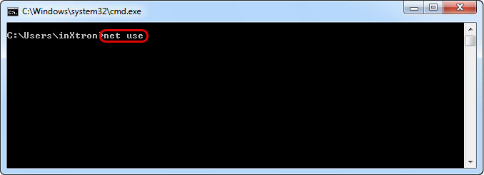 - Type net use to display the currently connected drives.