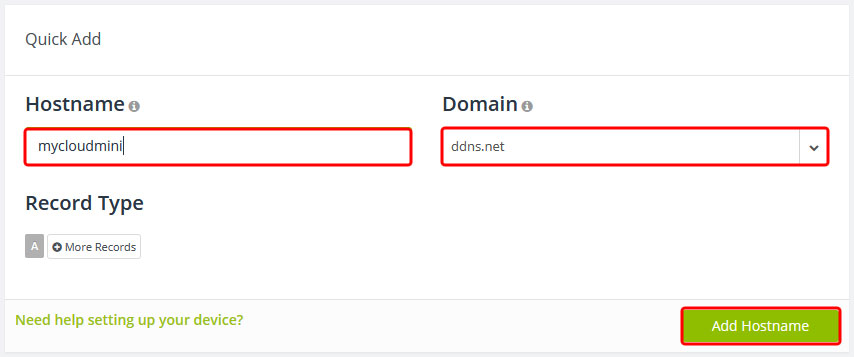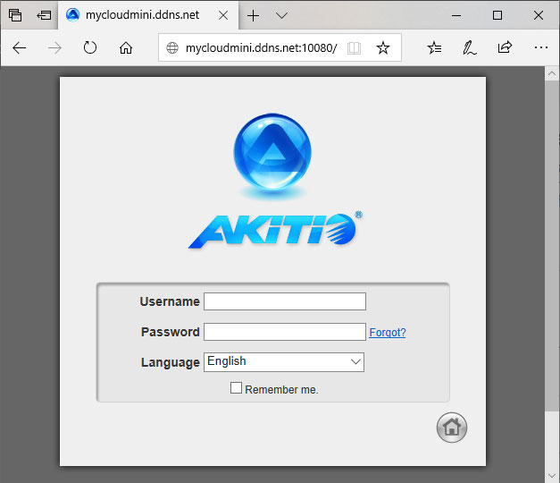 8. To access your device remotely, you can now use the hostname you registered plus the custom port number to login. In this example here, you would enter mycloudmini.ddns.net:10080 into the URL field of your web browser. This address is then redirected to port 80 on your network drive and you should see the login page of your device.