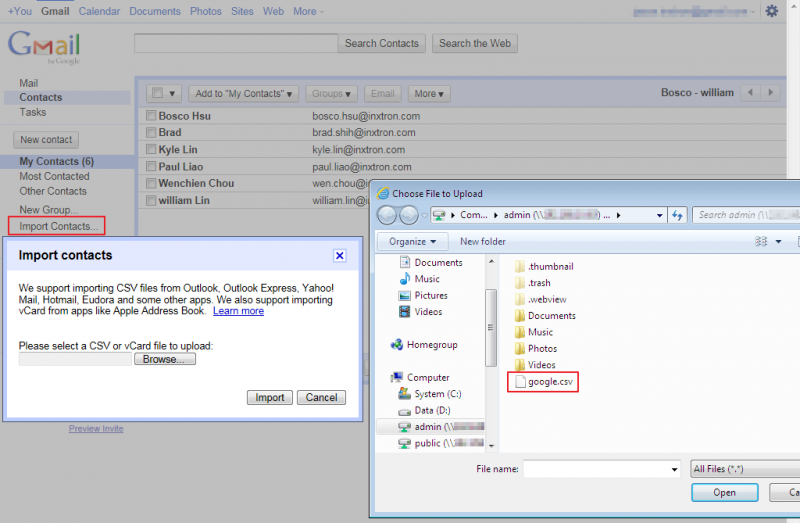 - Sign in to your Google Mail, click Import Contacts, select google.csv under your iSharing, to complete the Export to Google Mail.