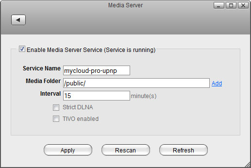 4. Click Add to select the folder(s) where your media files are stored. If needed, you can add multiple folders. The media server will scan for all the compatible media files in those directories and then stream them to the other UPnP-AV compliant devices on your home network.