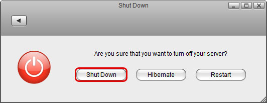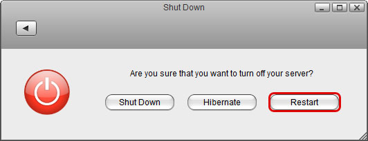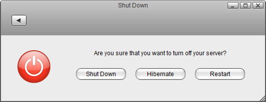 | Hibernate | Hibernate puts the system into hibernation. To turn it back on, either press the power button or if enabled, send a WOL command. This function is only available on certain models (e.g. MyCloud Pro). |