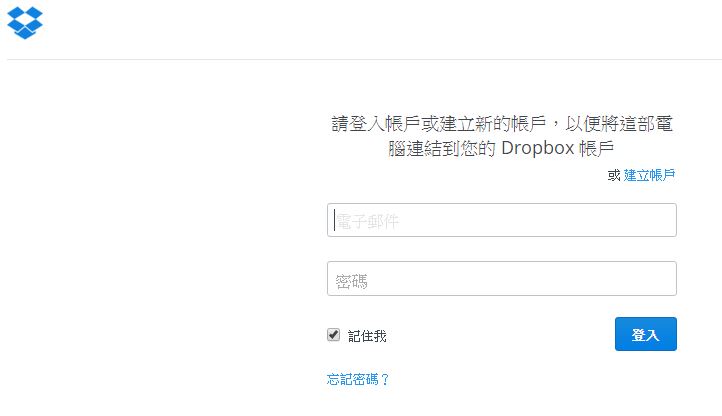 - 如果還未註冊 Dropbox 請先點選 [註冊Dropbox帳戶] 右方的連接。