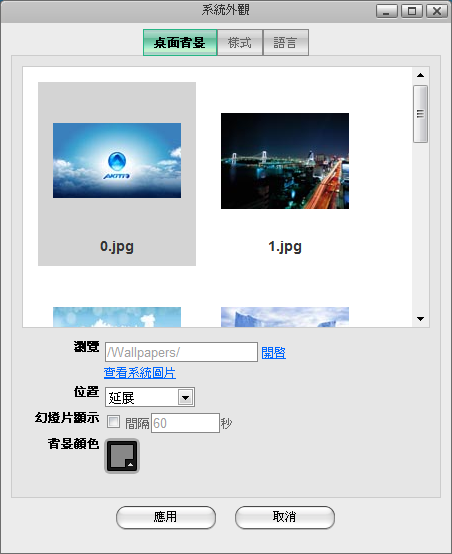 在此功能中您可以自訂桌面圖示、語言、外觀。