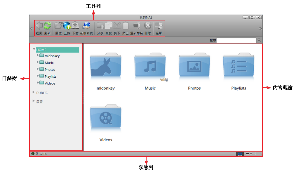 - 執行應用程式 - 按一下任一工具列圖示,則相對應的應用程式將會被啟動。