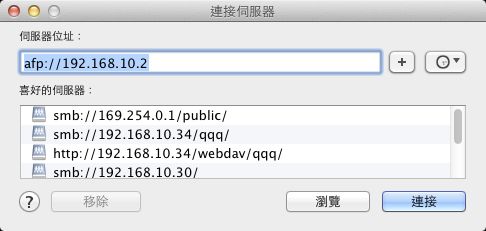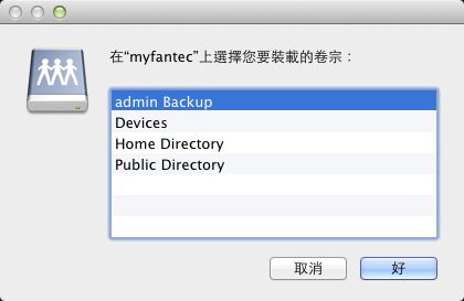 - 開啟Finder,選擇前往 → 連接伺服器,並以AFP連接伺服器後,選擇「admin Backup」來連接。