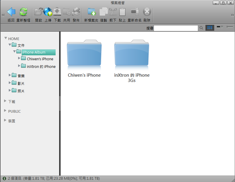 isharing可以備份您iPhone/iPad裡面的照片及影片到您的NAS中,按一下iBackup圖示來設置iBackup服務。