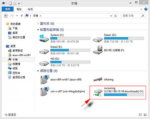 - 完成後會在「網路位置」中多出一個網路磁碟機。<