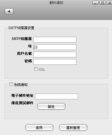 私有雲提供使用者寄發 Email 的服務。按一下郵件通知來打開 SMTP 郵件設定/通知頁面。