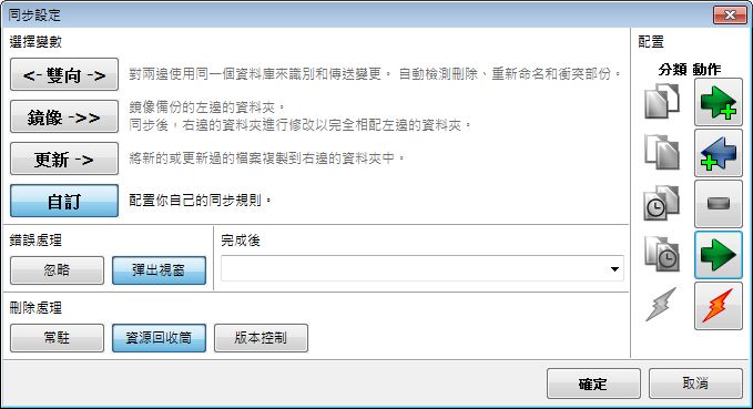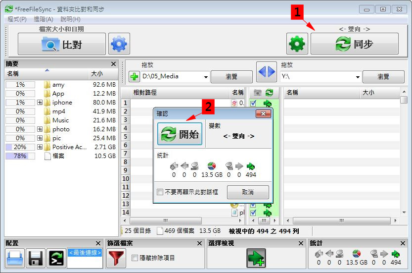 5. 按下「同步」,確認動作正確後再按下「開始」進行同步作業。